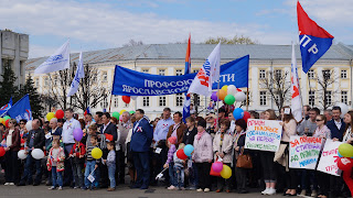 Первое мая – особый праздник. Ежегодно в этот день профсоюзы выходят на митинги и шествия, чтобы сказать о том, что их волнует и заявить свои требования к Правительству.Сегодня на шествие и митинг в честь праздника Весны и труда, инициатором которых стало Объединение организаций профсоюзов области, в Ярославле собрались свыше 4 тысяч ярославцев, а их лозунгом стали слова «Нет – росту налогов и тарифов, да – росту зарплат и пенсий». Колонна участников первомайского шествия прошла по традиционному маршруту: от площади Юности до Советской площади. В праздничном шествии с транспарантами, флагами и воздушными шарами шли отраслевые профсоюзы области, представители Общероссийского народного фронта, партии «Единая Россия», молодежь, представители трудовых коллективов. В рядах участников было много детей, а солнечный и теплый день прибавлял демонстрантам энтузиазма и хорошего настроения: ведь этот день совпал с замечательным праздником Святой Пасхи.Праздничный митинг открыл председатель Объединения организаций профсоюзов области Сергей Соловьев:— Сегодня, когда день Первомая совпал с праздником Воскресения Христова, хотелось бы напомнить о том, что идеалы справедливости, добра, милосердия и единства, которым более двух тысяч лет, по–прежнему актуальны и даже вынесены на лозунги профсоюзов.Исполняющий обязанности мэра города Ярославля Алексей Малютин выразил уверенность в том, что ярославцы справятся с задачами, которые диктует нам время. «Да, не все смогли присоединиться к профсоюзам, но ведь и дачники тоже трудятся, поддерживая отечественного производителя. С праздником человека труда!», — сказал он.Максим Лончаков, учитель средней школы №21, говорил от имени молодежи, которую в первую очередь волнует жилищный вопрос и детская летняя оздоровительная кампания.»За 2015 год на 10% возросло число преступлений, совершенных несовершеннолетними. А все потому, что многие семьи не могут купить путевку в детский лагерь. Необходим новый механизм опережающей компенсации при оплате за путевку», — считает он, и не только он.Эту же тему в своем выступлении поднял и председатель областной организации профсоюза работников строительства Денис Шубин, и добавил:— Сегодня день, когда мы можем напрямую высказать власти наши требования, наши лозунги. Не надо на нас, людей труда, перекладывать свои ошибки.С профсоюзными требованиями был согласен и председатель регионального отделения партии «Союз труда» Леонид Патрикеев, который потребовал навести порядок в отрасли ЖКХ и оптимизировать управление фондом капитального ремонта домов.В заключение была принята резолюция митинга, которая выразила солидарность с трудящимися России и всего мира и поддержала лозунг о праве на достойный, свободный и производительный труд, в основе которого — гарантии полной занятости, достойная зарплата и надежные социальные гарантии.